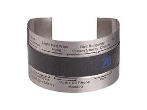 Die robuste und einfache Konstruktion aus rostbeständigem Edelstahl mit einer gebürsteten Oberfläche sorgt für eine lange Lebensdauer und benötigt keine Batterien, was es umweltfreundlich und wiederverwendbar macht. Dieses Weinthermometer passt auf alle Flaschen und ist somit ein vielseitiges Hilfsmittel für jeden Weinliebhaber.