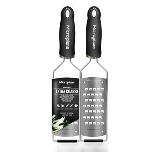 Die Microplane Küchenreibe Sehr Grob ist das perfekte Küchenwerkzeug für die Zubereitung von frischen Zutaten. Mit ihrer photo-geätzten, langlebigen und rasiermesserscharfen Edelstahlklinge, die in den USA hergestellt wurde, ermöglicht diese Reibe ein müheloses und präzises Raspeln von Kartoffeln, Zucchini, Karotten, Äpfeln, Kohlköpfen und Weichkäse.