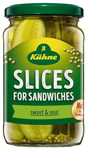 Entdecke die Kühne Sandwich Gurken in der praktischen 330g Verpackung, die dein Sandwich zu einem echten Geschmackserlebnis macht. Diese feinen, längs geschnittenen Gurkenscheiben sind perfekt für die Zubereitung von leckeren Snacks oder herzhaften Sandwiches.