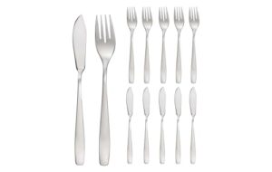 Das GRÄWE Fischbesteck besteht aus 12 hochwertigen Teilen, bestehend aus 6 Fischmessern und 6 Fischgabeln. Dieses Set vereint modernes und zeitloses Design und ist sowohl für den privaten Gebrauch als auch für den Einsatz in der Gastronomie ideal geeignet. Die Verwendung von Edelstahl 18/0 gewährleistet nicht nur eine ansprechende Optik, sondern auch eine hohe Langlebigkeit und Robustheit.