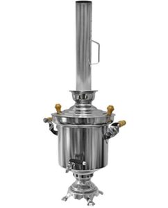 Der Edelstahl Holzkohle Samowar mit einem 5 Liter Behälter bietet Ihnen eine praktische Lösung, um Wasser zu erhitzen und gleichzeitig Tee zuzubereiten. Mit einem Gewicht von 3,6 kg ist er stabil und gut zu handhaben. Der Samowar ist mit einem Rauchrohr ausgestattet, das eine effiziente Abführung des Rauches gewährleistet und somit für ein angenehmes Nutzungserlebnis sorgt.