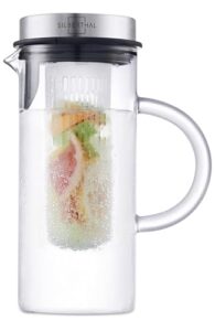 Die SILBERTHAL Glaskaraffe mit Deckel ist die ideale Wahl für alle, die frische Getränke lieben. Mit einem Fassungsvermögen von 1 Liter ermöglicht sie Ihnen, köstliches Infused Water mit Früchten wie Zitrone und Limette oder aromatischen Kräutern zuzubereiten. Der integrierte langlebige Fruchtsieb hält Fruchtstückchen beim Ausgießen zurück, sodass Sie ungestört genießen können. Alle Materialien sind BPA-frei, was für zusätzliche Sicherheit sorgt.