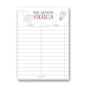 Dieser Vokabeltrainer eignet sich hervorragend für Schüler der Grundschule, Realschule und für das Abitur. Er ist vielseitig einsetzbar und ein ideales Geschenk für verschiedene Anlässe wie Geburtstage, Einschulungen, Nikolaus, Weihnachten und viele weitere Feiertage. Ob als Mitbringsel, für eine Genesung oder als kleines Dankeschön – der Vokabelblock ist immer eine durchdachte Wahl.