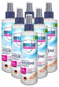 Entdecken Sie das Impresan Hygiene-Spray, das ideale Desinfektionsspray für Oberflächen und Textilien. In einem praktischen Vorteilspack mit 6 x 250ml bietet es Ihnen eine umfassende Lösung zur Bekämpfung von Keimen im Haushalt.