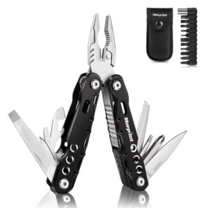 Entdecken Sie das Morpilot Multitool Werkzeug, ein vielseitiges und praktisches 25 in 1 Faltbares Edelstahl Multifunktionales Werkzeug, das in keinem Haushalt fehlen sollte. Mit seiner 14 in 1 Multi-Zange bietet dieses Multitool eine gefederte Zange, Spitzzange, Drahtschneider, verschiedene Schraubendreher und sogar einen Flaschenöffner und Dosenöffner. Es ist perfekt für alltägliche Aufgaben sowie für Abenteuer beim Camping oder Wandern.