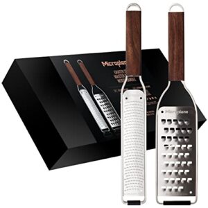 Entdecken Sie das Microplane Reiben-Set aus der Master-Serie, das Ihnen die perfekte Kombination aus Zester und sehr grober Reibe bietet. Dieses Set wird in einer eleganten Geschenkbox geliefert und ist ideal für die Zubereitung von Zitrusfrüchten, Hartkäse, Muskatnuss, Kartoffeln, Karotten und Zucchinis.