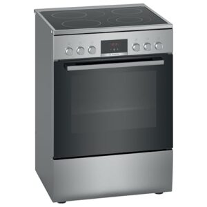 Der Bosch HKR39C250 Serie 4 Elektro-Standherd vereint Funktionalität und modernes Design in einem kompakten Format von 60 cm Breite. Das Elektro-Kochfeld aus Glaskeramik ermöglicht Ihnen ein unkompliziertes Kochen und eine einfache Reinigung. Dank der erweiterten Kochzone können Sie auch großes Kochgeschirr problemlos nutzen.