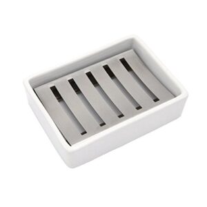 Die Lofekea Keramik Seifenschale ist der perfekte Begleiter für dein Bad oder deine Dusche. Hergestellt aus hochwertigem SUS304-Edelstahl und erstklassiger Keramik, vereint sie Funktionalität und Stil. Das zweischichtige Design sorgt dafür, dass deine Seifenleisten stets sauber bleiben und nicht auf der Arbeitsplatte liegen. Die Edelstahl-Ablage misst 10 x 7,2 cm, während die Keramikschale mit 11,5 x 9 x 3 cm ausreichend Platz für deine Seife bietet.