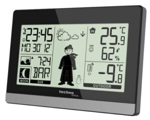 Technisch überzeugt die WS 9612 auf ganzer Linie. Sie bietet eine präzise Funkuhrzeit, sowie Innen- und Außentemperaturanzeigen. Auch die Innen- und Außenluftfeuchtigkeit wird zuverlässig gemessen. Ein besonderes Highlight ist die Wettervorhersage, die durch den charmanten „Weatherboy“ visualisiert wird: Bei warmem Wetter zeigt er sich in kurzen Badehosen, während er bei Kälte in warmen Pullovern, Schals und Mützen erscheint.