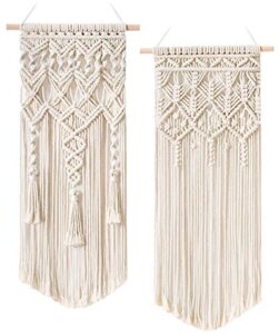 Der Mkouo Makramee Wandbehang ist eine harmonische Kombination aus Eleganz und böhmischem Stil. Dieses handgefertigte Kunstwerk besticht durch zarte Details und einen ansprechenden Rand, der jedem Raum Struktur und Interesse verleiht. Mit den Maßen von 71 cm (L) x 33 cm (B) und 73 cm (L) x 33 cm (B) ist dieser Wandteppich ideal für Schlafzimmer, Wohnbereiche, Kinderzimmer, Balkone, Flure und Arbeitsbereiche.