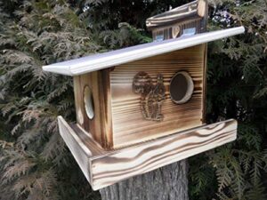 Das ARBRIKADREX Eichhörnchenfutterhaus aus Niederbayern ist speziell für Eichhörnchen entwickelt und hat sich in der Praxis bereits tausendfach bewährt. Gefertigt aus hochwertigem, edel geflammtem Vollholz, bietet es den Tieren einen sicheren und trockenen Rückzugsort während des Winters. Besonderes Augenmerk wurde auf die Sicherheit der Jungtiere gelegt: Der integrierte kleine „Balkon“ verhindert, dass die kleinen Eichhörnchen beim ersten Ausstieg auf den Boden fallen.