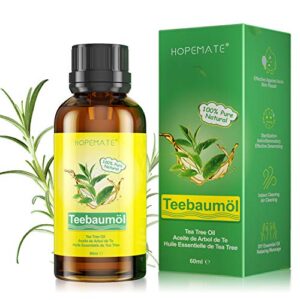 Teebaumöl 100% Reines und Naturrein, 60ML von HOPEMATE ist ein vielseitiges ätherisches Öl, das speziell zur Unterstützung unreiner Haut entwickelt wurde. Es wirkt effektiv gegen Pickel, Akne und Warzen und trägt zur Hautreparatur bei. Der zarte Duft sorgt für ein angenehmes Anwendungserlebnis. Teebaumöl reinigt die Poren und entfernt Bakterien, während es gleichzeitig die Haut glättet und Rötungen lindert.