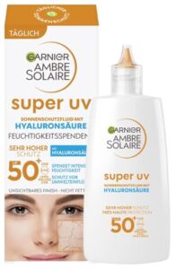 Das Garnier Antioxidative Super UV-Sonnenschutz-Fluid mit LSF 50+ bietet Ihnen einen effektiven und pflegenden Schutz vor schädlicher UV-Strahlung. Angereichert mit feuchtigkeitsspendender Hyaluronsäure sorgt dieses Sonnenschutz-Fluid für ein angenehmes Hautgefühl und schützt gleichzeitig vor Sonnenbrand sowie sonnenbedingten Pigmentflecken.