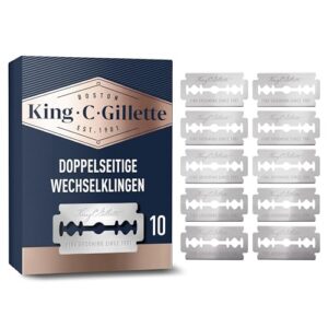 Die King C. Gillette Rasierklingen bieten Ihnen eine hochwertige Rasurerfahrung mit ihrer sicheren Doppel-Schneidekante. Diese 10 Ersatzklingen aus rostfreiem Edelstahl sind speziell für den King C. Gillette Double-Edge Rasierhobel entwickelt worden und garantieren eine präzise und gründliche Rasur.