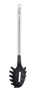 Hergestellt aus robustem Nylon-Material (PPA), schützt der Spaghettiheber Ihre Pfannen und Töpfe vor Kratzern und ist somit ideal für Kochgeschirr mit Antihaftversiegelung. Der ergonomische Edelstahlgriff liegt gut in der Hand und ist mit einer praktischen Aufhängeöse ausgestattet, die eine saubere und griffbereite Aufbewahrung ermöglicht.
