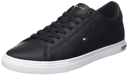 Entdecke die Tommy Hilfiger Herren Vulcanized Sneaker Essential Leather Detail Vulc Schuhe in Schwarz (Black) in der Größe 42 EU. Diese sportlichen Sneaker bestechen durch ihr premium Design, das mit hochwertigen Materialien gefertigt ist. Das markante Tommy Hilfiger-Branding und die seitlich aufgestickte Flag verleihen dem Schuh einen besonderen Akzent.