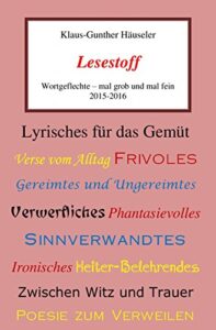 „Lesestoff: Wortgeflechte – mal grob und mal fein“ ist mehr als nur ein Buch; es ist eine Einladung, die Sprache zu feiern und ihre vielfältigen Facetten zu entdecken. Tauchen Sie ein in diese sprachliche Entdeckungsreise und lassen Sie sich inspirieren!