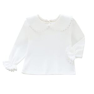 Das Baby Kinder Jungen Mädchen Baumwolle Langarmshirt mit Peter Pan Kragen ist eine stilvolle und praktische Wahl für die Kleinen. Der exquisite Peter Pan Kragen verleiht dem Shirt einen süßen, lieblichen Look, der ideal für verschiedene Anlässe ist. Der Knopfverschluss auf der Rückseite erleichtert das An- und Ausziehen, während die langen Ärmel und kleinen Volant Ärmel zusätzlichen Komfort bieten.