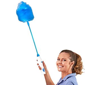 Entdecken Sie den elektrischen Staubwedel, der Ihnen die Reinigung erleichtert und für ein staubfreies Zuhause sorgt. Dieser innovative Staubfänger kommt mit zwei rotierenden Aufsätzen – einem großen (24 cm) und einem kleinen (14 cm) Staubwedel – die Staub und Flusen magisch anziehen. Dank der Verlängerungsstange von 50 bis 76 cm erreichen Sie mühelos selbst schwer zugängliche Stellen, sei es unter Möbeln oder in hohen Ecken.