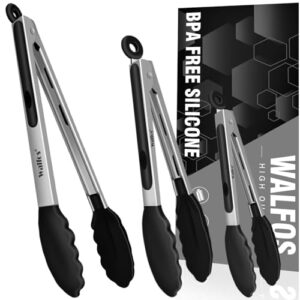 Die Walfos® Küchenzange ist ein unverzichtbares Werkzeug für jede Küche und Grillstation. Dieses 3er-Set umfasst drei verschiedene Größen (18 cm, 23 cm und 30,5 cm), ideal für vielfältige Anwendungen beim Kochen und Grillen. Die Zangen sind mit hitzebeständigen Silikonspitzen ausgestattet, die Temperaturen bis zu 480°F standhalten und dabei nicht schmelzen, rosten oder abblättern.