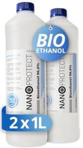Nanoprotect Bioethanol 96,6% | 2 x 1 Liter | Flüssiger Ethanol Brennstoff für Indoor Kamin und Tischfeuer | Reiner Ethylalkohol als Lösemittel | Geprüfte Premium Qualität teilen: