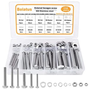 Entdecken Sie das Bolatus 112 Stück Sechskantschrauben Set, das eine umfangreiche Auswahl an hochwertigen Schrauben, Muttern und Unterlegscheiben bietet. Dieses Set umfasst 6 verschiedene Kombinationsgrößen: M6X40, M6X60, M8X40, M8X60, M10X40 und M10X60, sodass Sie für jede Anwendung die passende Größe zur Hand haben.