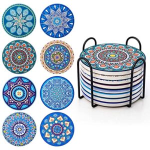 - Inhalt: Das Set enthält 8 stilvolle Untersetzer, die mit einem praktischen Metallhalter geliefert werden, ideal zur Aufbewahrung.