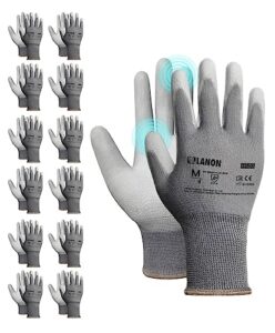 Entdecken Sie die LANON 12 Paar PU Professionelle Arbeitshandschuhe, die ideale Wahl für Mechanik und Werkstatt. Diese Arbeitshandschuhe bieten nicht nur ausgezeichneten Schutz, sondern auch höchsten Tragekomfort. Die atmungsaktive, nahtlose 13-Gauge-Polyesterschale fühlt sich an wie eine zweite Haut und sorgt dafür, dass Ihre Hände kühl und trocken bleiben. Das stilvolle, enge strickbündchen am Handgelenk erleichtert das An- und Ausziehen, sodass Sie lange ohne Beschwerden arbeiten können.