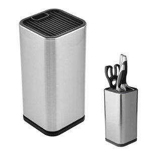 - Breite Anwendbarkeit: Der Universal Messerblock aus Edelstahl eignet sich für eine Vielzahl von Messern, darunter Kochmesser, Steakmesser, Brotmesser und Küchenscheren.