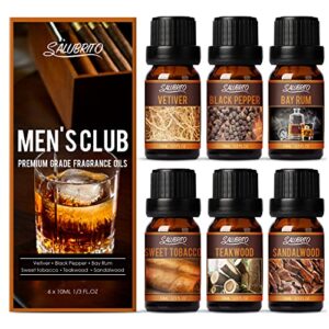 Entdecken Sie das SALUBRITO Männer Ätherische Öle Set, bestehend aus sechs sorgfältig ausgewählten Duftölen, die speziell für Männer entwickelt wurden. Dieses Set umfasst die belebenden Aromen von Sandelholz, Teakholz, Lorbeer-Rum, Schwarzer Pfeffer, Vetiver und viele andere holzige, würzige Düfte, die perfekt für die Aromatherapie geeignet sind.