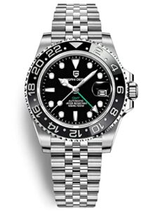 Die PAGANI DESIGN Herrenuhr Automatik PD-1662 GMT ist das ideale Accessoire für stilbewusste Männer, die Wert auf Funktionalität und Eleganz legen. Diese mechanische Uhr mit GMT-Funktion ermöglicht Ihnen, mühelos die Zeit in zwei verschiedenen Zeitzonen im Blick zu behalten, was besonders auf Reisen oder bei geschäftlichen Terminen von Vorteil ist.