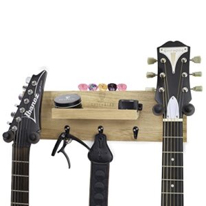 Das hölzerne Gitarrenwandregal bietet nicht nur Platz für Ihre Instrumente, sondern auch eine praktische integrierte Plektrumhalterung. So haben Sie Ihr Gitarren-Zubehör wie Stimmgeräte und Klötze stets griffbereit und ordentlich verstaut. Der Lieferumfang umfasst ein Gitarrenregal aus massivem Eichenholz, drei Mehrzweckhaken, ein Mini-Regal, Montagezubehör sowie eine Anleitung für eine einfache Installation.