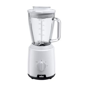 Der Braun PowerBlend 1 JB1050WH ist ein leistungsstarker Standmixer, der mit seinem 1,5 l Glas-Mixaufsatz vielseitige Einsatzmöglichkeiten in Ihrer Küche bietet. Dank der TRIACTION-TECHNOLOGIE wird sichergestellt, dass alle Zutaten optimal zerkleinert und püriert werden, da es keine toten Winkel gibt. Die Zutaten werden effizient in den Mischbereich zurückgeleitet, was zu perfekten Mixergebnissen führt.