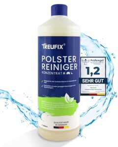 Treufix – Polsterreiniger Konzentrat ist die ideale Lösung für eine gründliche Reinigung von Sofa, Couch und Matratzen. Unser effektives Teppich Reinigungsmittel (1L) wurde speziell für die Anwendung mit Nass- und Waschsaugern optimiert und entfernt zuverlässig Flecken und Gerüche aus Polstern, Textilien und Teppichen.