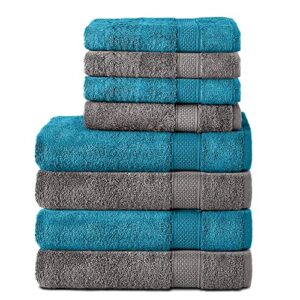 Entdecken Sie das Komfortec 8er Handtuch Set, das aus 100% hochwertiger Baumwolle gefertigt ist und Ihnen ein unvergleichliches Wohlfühl-Erlebnis bietet. Dieses Set umfasst 4 Handtücher in der Größe 50×100 cm und 4 Badetücher mit den Maßen 70×140 cm, ideal für Ihr Badezimmer.
