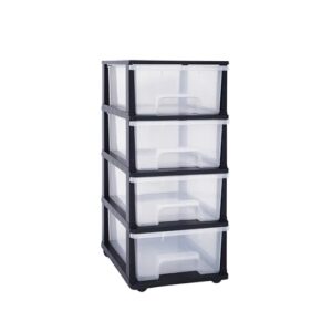 Der gesamte Schubladenschrank misst 43,5 x 33,5 x 73,5 cm (L x B x H) und lässt sich mühelos aufbauen. Dank der praktischen Räder können Sie die Boxen selbst im befüllten Zustand schnell und einfach transportieren. Die transparenten Schubladen mit Griffmulden bieten einen klaren Blick auf den Inhalt, während der elegante schwarze Rahmen eine stilvolle Ergänzung zu jeder Einrichtung darstellt.