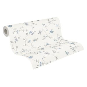 Entdecken Sie die A.S. Création Maison Charme Vliestapete mit floralem Muster in den sanften Farben Creme, Grau und Blau. Diese hochwertige Vliestapete misst 0,53 x 10,05 m und ist aus FSC-Mix-zertifiziertem Holz gefertigt, was für ein gesundes Raumklima in Ihrem Zuhause sorgt. Dank der emissionsarmen Rohstoffe tragen Sie zu einem besseren Wohnumfeld bei.