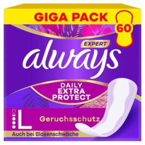 Entdecken Sie die Always Expert Daily Extra Protection Long Slipeinlagen mit 60 Stück, die speziell für Frauen entwickelt wurden, die zusätzlichen Schutz und Komfort suchen. Diese Slipeinlagen bieten nicht nur eine hervorragende Absorption, sondern sind auch geruchsneutralisierend, sodass Sie sich den ganzen Tag über frisch fühlen.