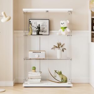 Die AUFHELLEN Glasvitrine in Weiß präsentiert sich als stilvolle und praktische Lösung für Ihre Aufbewahrungsbedürfnisse. Mit großzügigen Gesamtabmessungen von 125x79x36,5 cm bietet diese Standvitrine ausreichend Platz für Sammlerstücke, Bücher oder Wein. Die vier verstellbaren Regale und die rutschfeste Bodenplatte ermöglichen eine flexible Nutzung und Anpassung an unterschiedliche Bodenverhältnisse.