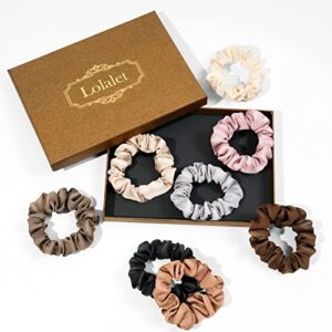 Entdecken Sie die (8 Stück) Lolalet Haargummis aus hochwertiger Seide, perfekt für Damen und Mädchen. Diese Premium Satin Haargummis sind in 8 stilvollen Farben erhältlich: Schwarz, Dunkelbraun, Rosa, Hellbraun, Champagner, Peru, Weiß und Grau. Dank ihrer vielseitigen Farbpalette lassen sie sich mühelos an verschiedene Outfits anpassen und verleihen jedem Look eine elegante französische Ästhetik.