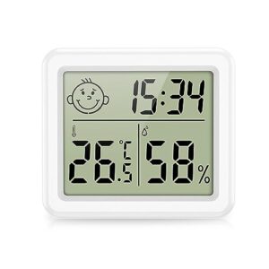 Entdecken Sie das Brifit Digital Mini Thermometer Hygrometer, Ihr zuverlässiger Partner für präzise Raumklimaüberwachung. Mit hochpräzisen digitalen Sensoren überwacht dieses Hygrometer subtile Veränderungen in Temperatur und Luftfeuchtigkeit. Der Temperaturmessbereich reicht von -10°C bis +60°C (14°F bis +140°F) mit einer Genauigkeit von ±1.0℃ (±1.8℉). Die Feuchtigkeitsmessung erfolgt im Bereich von 10 % RH bis 99 % RH mit einer Genauigkeit von ±5 % RH.