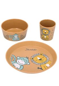 Das Sterntaler Geschirrset Affe Albert und Löwe Lio ist eine charmante Auswahl für Jungen und Mädchen, die mit einem liebevollen Motivdruck begeistert. Dieses Set besteht aus einem Teller, einer Schale und einem Becher, ideal für die ersten Mahlzeiten und Snacks. Hergestellt aus biozirkulärem Kunststoff und Holzfasern, vereint es Nachhaltigkeit mit kindgerechtem Design.