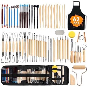 - 62 Stück Keramik-Schnitzwerkzeuge: Das Set umfasst vielseitige Werkzeuge mit Doppelend-Design, darunter Holzgriff-Kugelstifte, Farbformer, Holzlehmwerkzeuge und Kunststoff-Keramikwerkzeuge. Auch enthalten sind ein praktisches Schwammei und eine Aufbewahrungstasche.