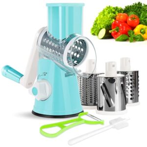 Dank der praktischen Saugnapffunktion sitzt der Gemüsehobel stabil auf Ihrer Arbeitsplatte und ermöglicht ein müheloses Reiben. Die drei hochwertigen 430-Edelstahlklingen, darunter eine Schneidklinge, eine grobe Raspelklinge und eine feine Raspelklinge, meistern alle Anforderungen Ihrer Küche. Drehen Sie einfach den Griff, und die Klinge rotiert schnell und effizient.