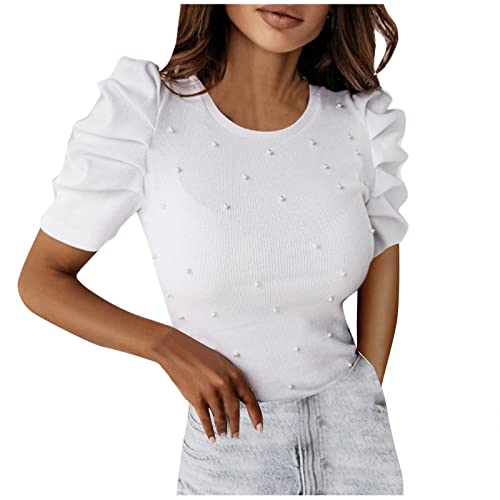 Das elegante T-Shirt für Damen mit Aufdruck ist ein unverzichtbarer Teil deiner Alltagsgarderobe. Mit seinem sexy Bikini-Oberteil-Design und den raffinierten Puffärmeln ist es ideal für festliche Anlässe wie Hochzeiten. Das einfarbige, gerippte Strickmaterial sorgt nicht nur für einen modischen Look, sondern auch für einen angenehmen Tragekomfort. Die Perlendetails verleihen dem Shirt einen Hauch von Eleganz.