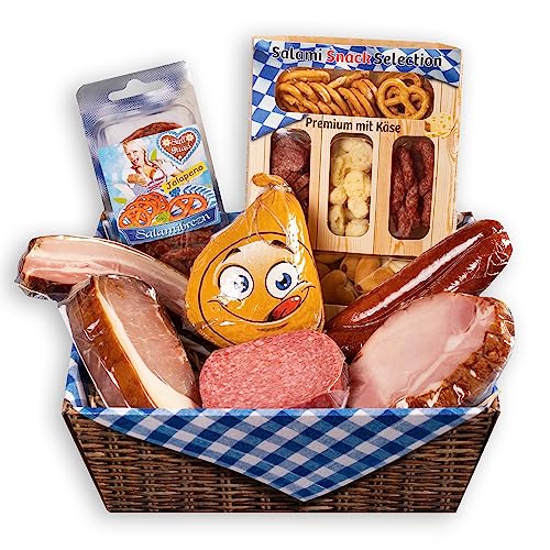 Inhaltlich bietet die Geschenkbox eine vielfältige Auswahl: schwarzgeräucherter Wacholderbauch, Oberpfälzer Bauerngeräuchertes (roh), Kaminwurzen sowie eine Snack Selection mit Käse, Salami Brezen Jalapeño, Kantcervelat und Oberpfälzer Schwarzrauchschinken vom Hals. Besonders hervorzuheben ist die originelle Salami „lachendes Gesicht“. Diese Mischung aus herzhaften Spezialitäten trifft jeden Geschmack.
