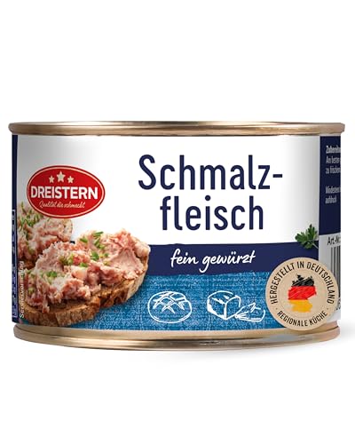 Dank der schonenden Zubereitung überzeugt das DREISTERN Schmalzfleisch durch eine lange Haltbarkeit ohne Kühlung, sodass du täglich gesunde und schmackhafte Küche genießen kannst. Vertraue auf die Qualität von DREISTERN, die seit vier Generationen mit Herz und Hand produziert wird und traditionelle sowie moderne deutsche Küche vereint.
