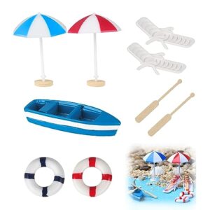 Die sorgfältig gestalteten Dekorationen sind nicht nur süß, sondern auch lebendig und bringen eine fröhliche Atmosphäre in jede Umgebung. Die hellen Farben der Strandthemenelemente verleihen Ihrem Raum ein sonniges Sommergefühl, während die Mini-Größen ideal sind, um Platz zu sparen. Diese Zubehörteile eignen sich hervorragend für die Gestaltung von Mikro-Landschaften oder als kreative Tischdekoration.