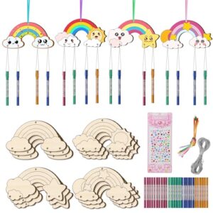 Nourdom 12 Stück Windspiel Bastelset Kinder, Regenbogen Holz Klangspiel Basteln Bastelhandwerk zum Bemalen Holz zum Bemalen für Mädchen Junge Kindergeburtstag
