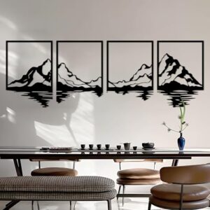 Entdecken Sie die ESTART Berg-Metall-Wandkunst, ein elegantes Dekor-Set bestehend aus 4 einzigartigen Stücke, die Ihre Wände zum Leben erwecken. Mit ihrem rustikalen Design aus schwarzem Metall und Rahmen bringen diese Wanddekorationen die Schönheit der Natur in Ihr Zuhause.